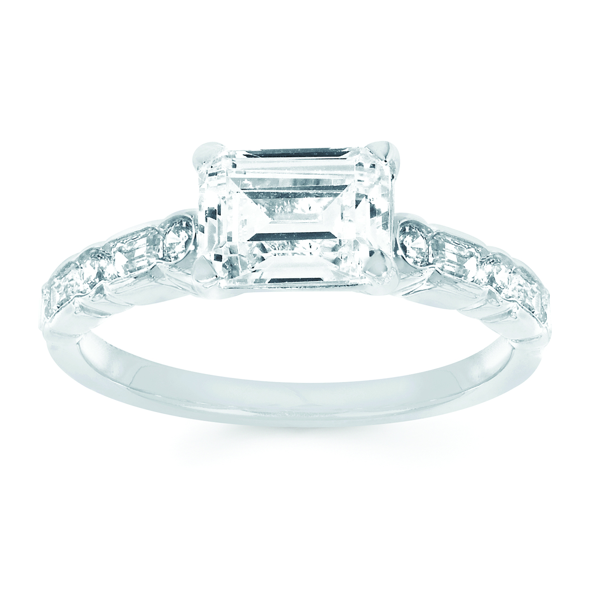 Engagement Ring Modern Bridal: 1/2 Ctw. Diamond Semi Mount shown with 1 1/2 Ct. Emerald Center Diamond in 14K Gold